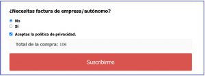 Acepta la política de privacidad (tus datos se mantendrán confidenciales) y haz click en “Suscribirme”